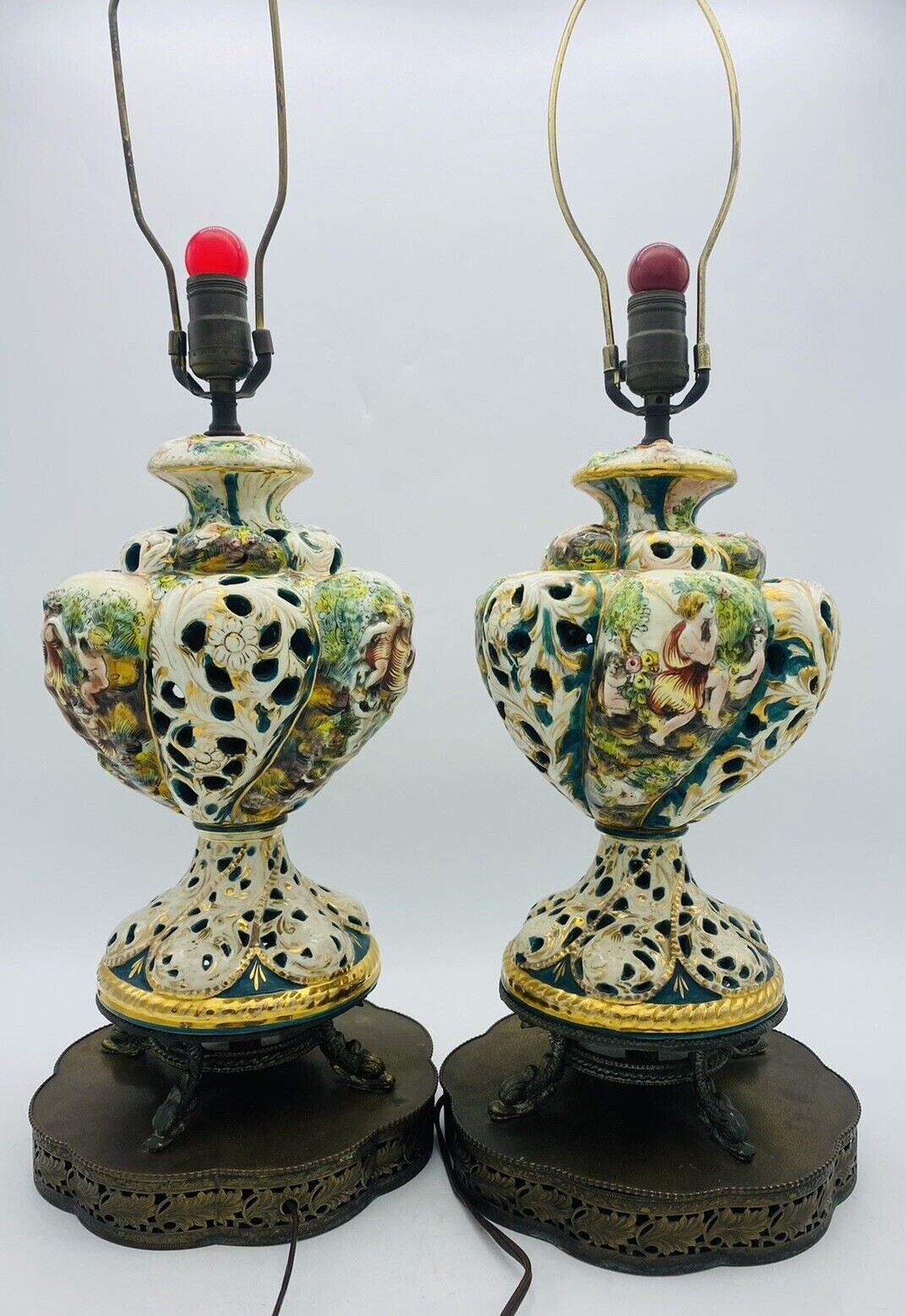 Vintage Capodimonte Table Lamps Pair Italy Large 28 Cherubs Gold Leaf Ebay